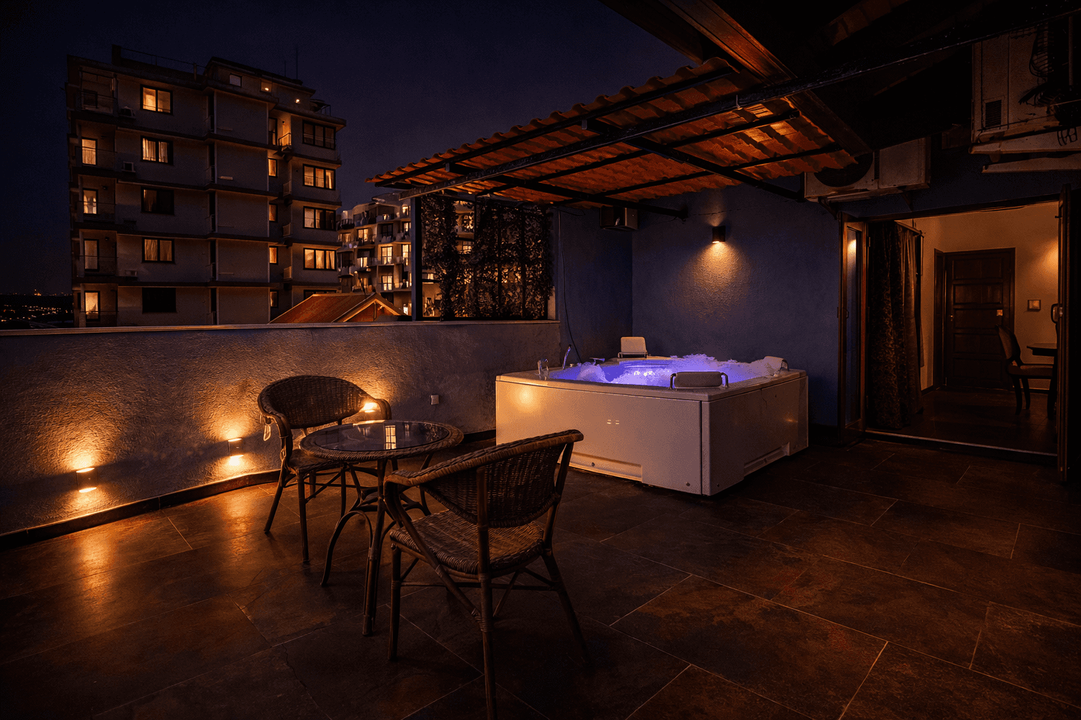 A premium two-bedroom suite with a private jacuzzi and sea view. Offers elevated space and features for special stays. Confirm inclusions at booking as amenities may vary by unit.